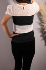 - ترکیب پارچه توری سفید و تریکو مشکی