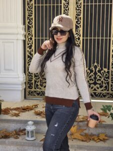 – رنگ: ترکیب کرم و قهوهای که به راحتی با انواع شلوار جین یا لگینگ ست میشود.