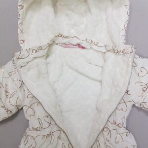 طراحی این کاپشن بهصورت مانتویی و کمی بلندتر از حد معمول انجام شده تا قسمت پایینتنه کودک بهتر از سرما محافظت شود. قسمت زیر سینه کشدوزی شده که باعث تنخور شیک، مرتب و دلبر کاپشن میشود. وجود کلاه متصل نیز محافظت بیشتری در برابر سرما و باد فراهم میکند.