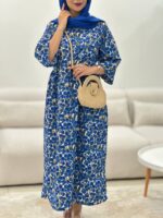 طراحی فری سایز این پیراهن باعث شده تا برای سایزهای 38 تا 48 کاملاً مناسب باشد. دور سینه ۱۱۰ سانتیمتر، دور کمر ۱۰۶ و دور باسن ۱۵۰ سانتیمتر طراحی شده که نشاندهنده آزادی حرکت و راحتی در پوشیدن است. قد لباس حدود ۱۳۰ سانتیمتر بوده و آستینها نیز با طول ۵۵ سانتیمتر از یقه، پوشش مناسبی ایجاد میکنند.
